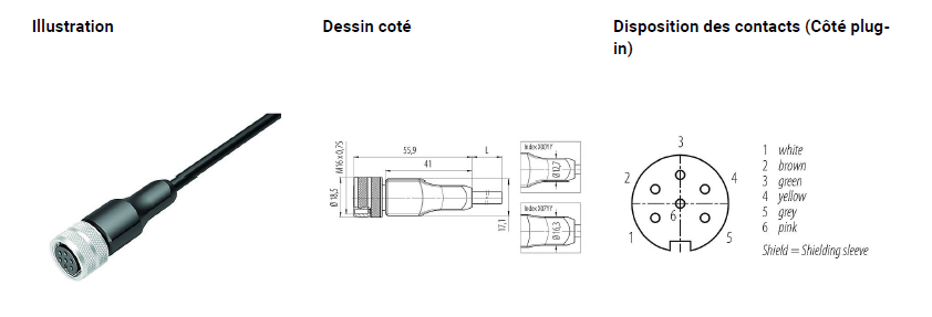 Version connecteur avec câble et Soudure des 2 fils sur Broches 3 et 5 : Câble U242 Lapp Unitronic 2 x 0,25