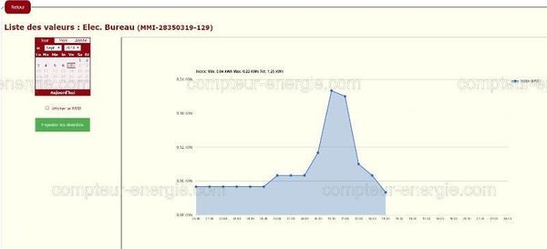 - Affichage des valeurs de consommation ou de température du moment